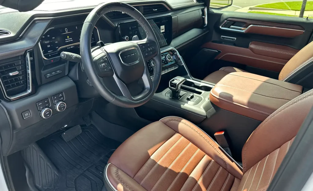 The 2024 GMC Sierra Denali Ultimate is the pinnacle of luxury and capability in a full-size pickup truck. It features a powerful 6.2L V8 engine paired with a 10-speed automatic transmission, delivering robust performance. The Sierra Denali Ultimate boasts a refined interior with premium materials and advanced technology, providing a comfortable and sophisticated driving experience. Its 4WD system enhances its off-road and towing capabilities, making it a versatile and luxurious truck.